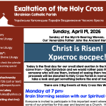 | Easter Sunday – Pascha | April 5 | 8 am Resurrectional Matins, Divine Liturgy and the Blessing of Easter Baskets |