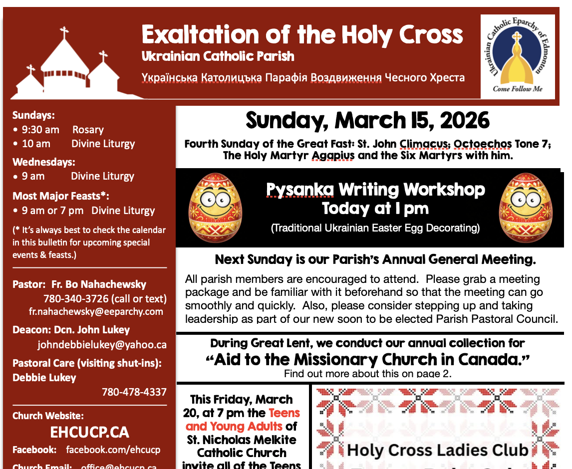 Exaltation of the Holy Cross Ukrainian Catholic Parish is one of many Ukrainian Catholic Churches in Edmonton, across Alberta, and throughout the world.