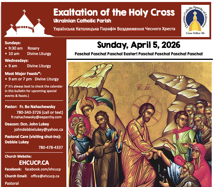 Exaltation of the Holy Cross Ukrainian Catholic Parish is one of many Ukrainian Catholic Churches in Edmonton, across Alberta, and throughout the world.
